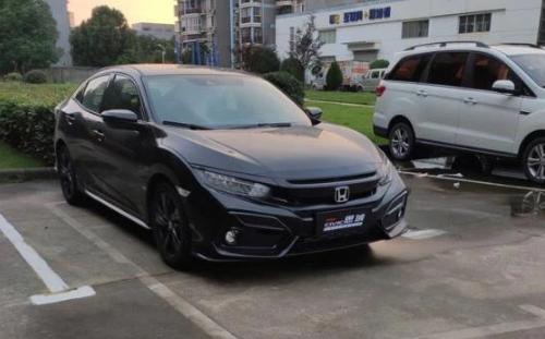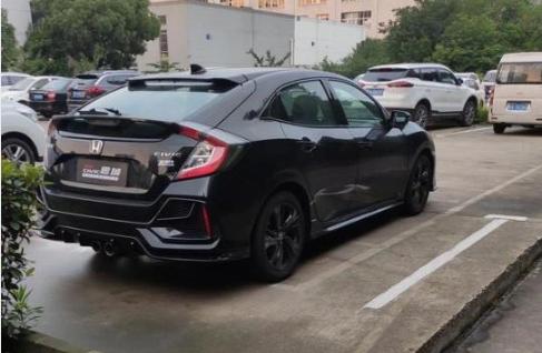 思域 (配置|询价)两厢版国内实车谍照曝光,轱辘哥近日从相关渠道获取了一组东风本田两厢思域的实车谍照。从图可见,新车前后车牌都挂上了“思域”车名,黑色、蓝色、白色两厢思域停在同一停车场内,国产两厢思域预计于本月内正式上市。国产两厢思域外观设计和海外版几乎相同,长宽高分别为4517/1799/1434mm,轴距为2700mm,配16或17英寸轮圈。