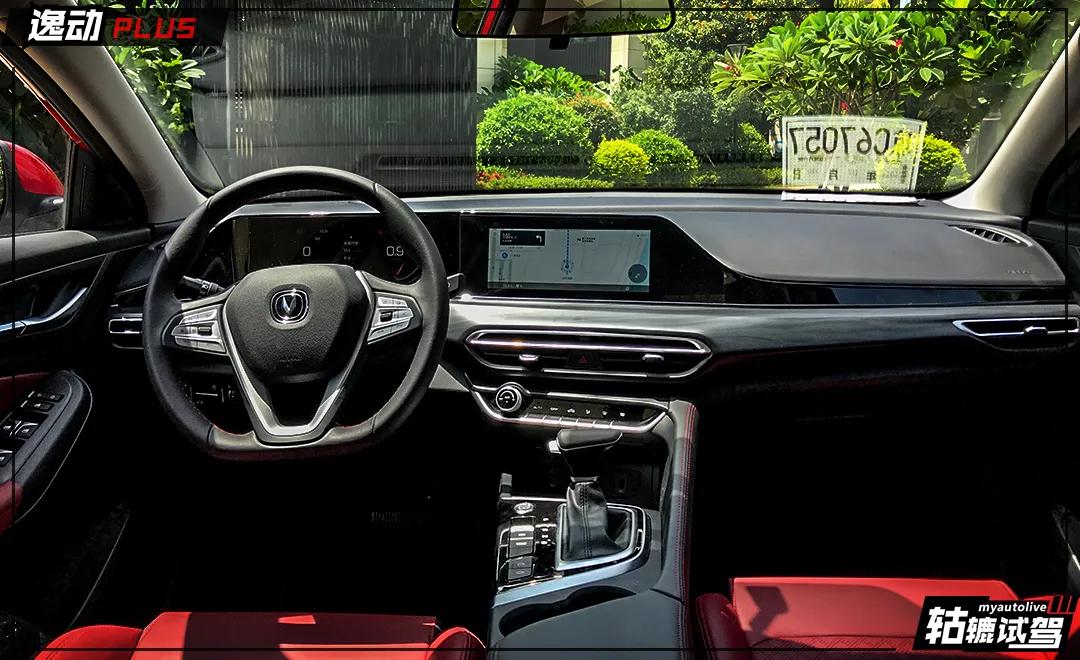 逸动PLUS内饰部分“传承”了长安汽车PLUS家族车型的设计调性。双10.25英寸的贯穿式显示屏集成了仪表和多媒体系统,UI设计、可读性、造型的表现都相当出众。这样的设计也与CS75 PLUS等“PLUS”车型近似。