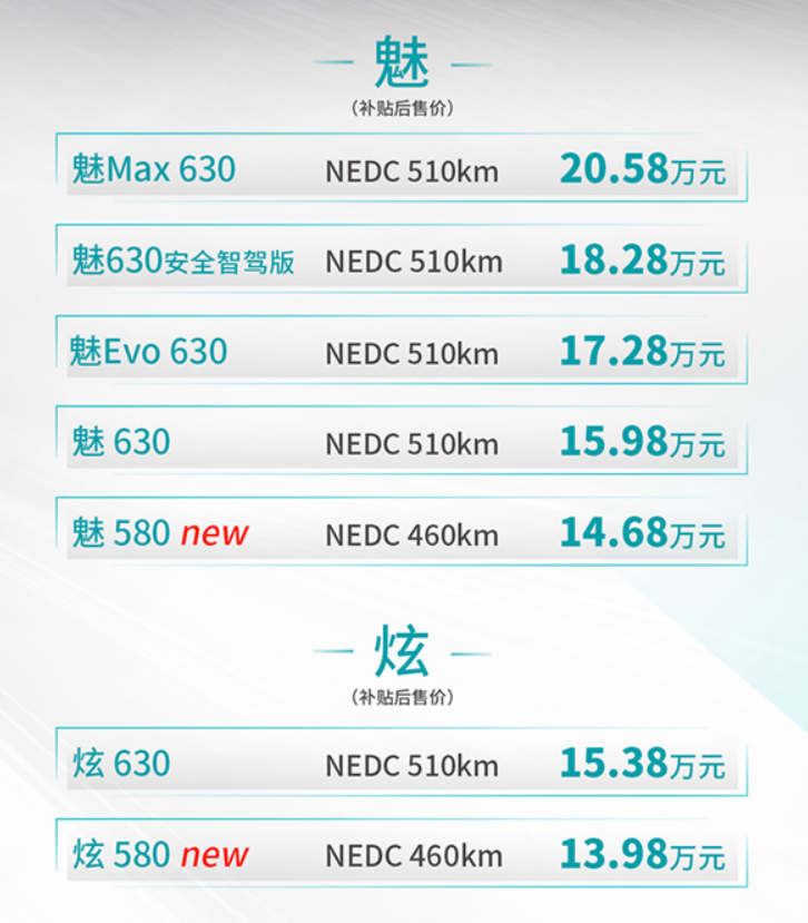 2020款埃安S在取消魅Max 530及魅 Evo 530两款车型的基础上,推出全新NEDC续航达460km的魅580和炫580系列车型,续航进一步提升;全系升级标配可开启式全景天窗、倒车影像、6扬声器、PM2.5滤芯和远程一键杀毒,同时,2020款埃安S还提供了三电终身质保服务(非营运首任车主,每年少于3万公里),这也是使广汽新能源成为业内唯一所有产品均提供三电终身质保的车企。