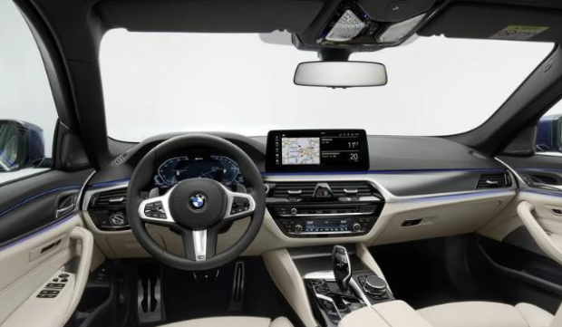在内饰方面,新款国产宝马5系的总体设计与当前现款车型基本一致,但许多细节已得到改进,包括配备了全新布局的多功能运动皮革包裹方向盘、熏黑中控装饰件、内嵌iDrive 7.0的10.25英寸中控娱乐系统(可选装12.3英寸)、带有扩展功能的全新自动空调系统、带有Sensatec打孔的新型M运动座椅。