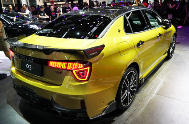 在外观上来看,领克03+是根据普通版领克03打造的,但是在将全碳纤维运动套件添加到整个车身之后,使新车更加具有性能车的样子。此外,通过渲染“炫燃金”的独特配色,领克03+的视觉效果极为出色。19英寸的双色轮毂增强了赛道范儿,而Continental MC6轮胎也很大程度地增强了其抓地力。C柱上领克03+的“ +”标识也表明了其特殊身份。双边共四出的排气布局和碳纤维后尾翼再加上巨大的扩散器提升了整车的气场。
