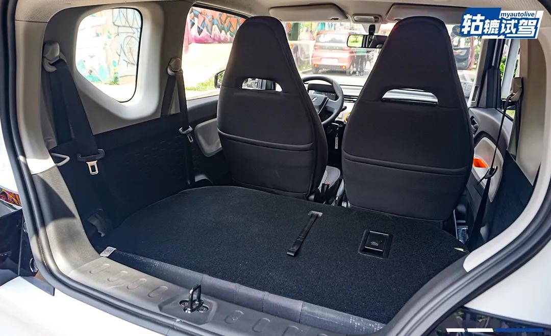 而且,宏光MINI EV前后座椅空间宽敞灵活,在不需要后排坐人的时候,后排座椅放倒与后备箱能形成平整大空间,最大空间可达 741 升,可以轻松放下 2 个 26 寸行李箱、婴儿车等大件物品,完全满足日常家庭出行时的装载需求。