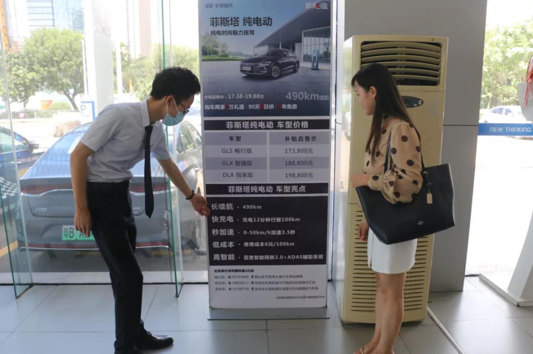 进店之后,销售顾问非常热情地迎接我们,并且向张老师介绍菲斯塔纯电动的主要功能。