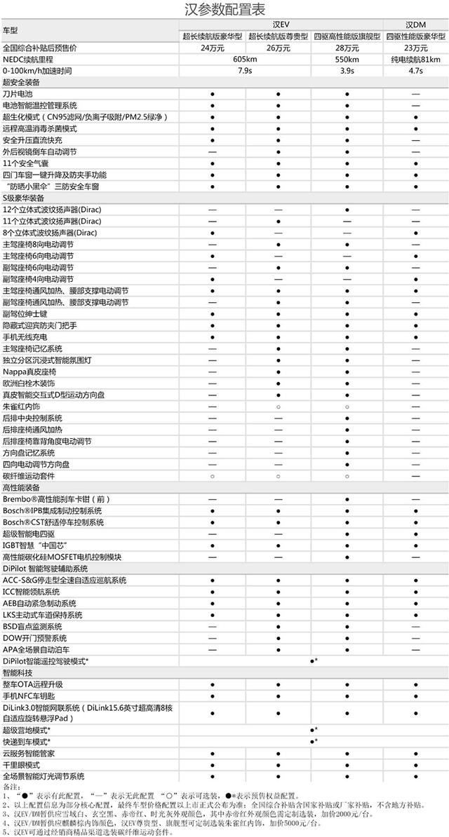 从目前曝光的配置信息来看,比亚迪汉全系标配“超生化模式”、带防夹手的一键升降、8喇叭扬声器、主驾驶座椅通风/加热、手机无线充电、全速域自适应巡航、车道保持、15.6英寸可旋转中控屏等功能组件。