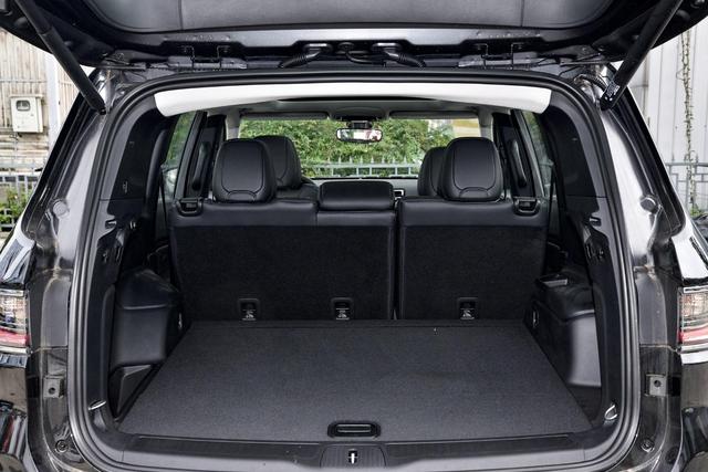 即便是第三排座椅打开的状态,大指挥官的行李厢空间也能装下普通尺寸的登机箱,并且是在不影响电动尾门关闭的情况下。车尾顶部的加强筋会或多或少影响行李厢的内部高度。后备厢地台也比较平整,其储物能力还是不错的。