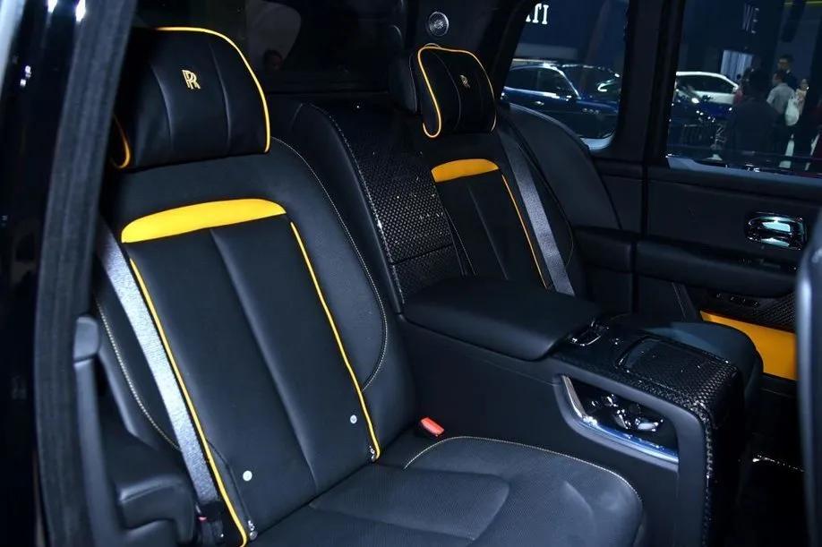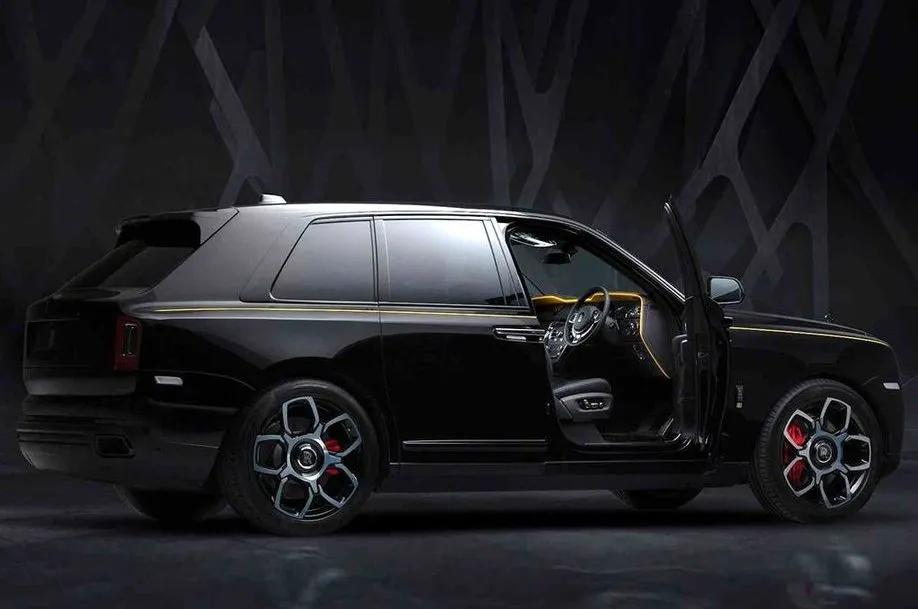 库里南Black Badge配备了22英寸五辐花瓣形拼色轮圈,同时除了轮圈外,新车的红色卡钳都难得可贵的带有RR Logo。同时,劳斯莱斯经典的纯手工绘制的“黄金腰线”也出现在了库里南Black Badge身上,从车头贯穿到车尾,除了起到点缀的用途外,也将是身份的一种象征。
