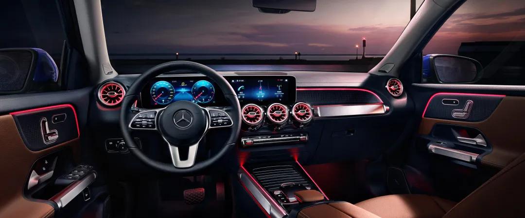 这套内饰,除了造型精致,材质搭配丰富,还充分运用灯光,使得整体氛围更活泼。比如空调降温时,出风口的灯光为蓝色,升温时,出风口的灯光为红色。另外,全新的MBUX车机,将智能体验提到新的层面,好看之余也更好用了。