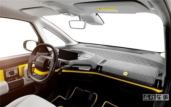 虽然受限于成本,宏光MINI的内饰设计非常简约,但是细节设计比较精致。四座布局,电子助力、倒车雷达、胎压监测、儿童座椅安全接口等该有的配置都有。