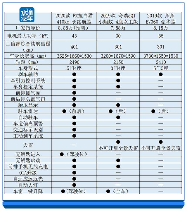 因此,对外观内饰设计有一定个性化要求的消费者,可以选择这只欧拉白猫,对配置有需求完全可以上顶配,不必担心性价比的问题。而如果想要一辆双门的电动微型车,那么奇瑞eQ1可以满足你。总之,对于选车这件事,适合自己的才是最好的。