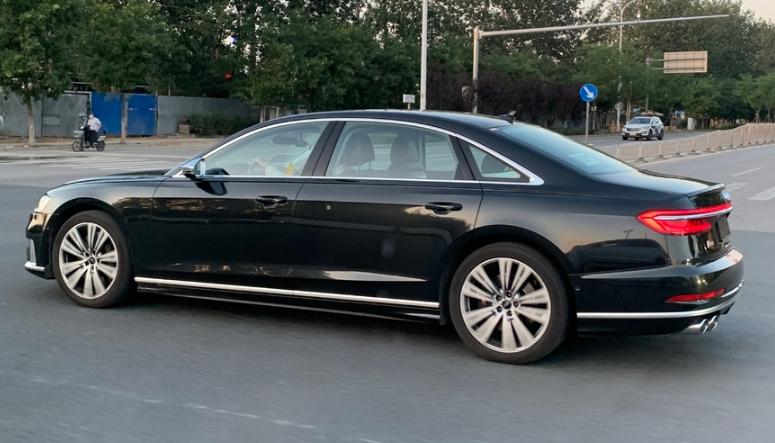 奥迪S8 (配置|询价)长轴距版国内谍照曝光。轱辘哥近日从相关渠道获得了一组奥迪S8长轴距版的国内路试照片。据悉,新车将搭载4.0T V8双涡轮增压发动机和48V轻混系统,或在本月上市。