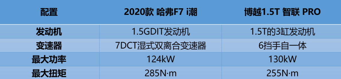 作为日常出行的主要工具之一,动力系统同样是决定车辆核心竞争实力的关键因素。在动力系统方面,两款车均搭载排量为1.5L的涡轮增压发动机,其中博越PRO采用的是三缸发动机,本身存在的物理缺陷难免造成抖动、动力不足的问题,其表现并不如哈弗F7优秀。在传递动力的变速器方面,哈弗F7采用7DCT变速器,博越PRO采用技术相对老旧的6挡手自一体变速器,相较之下,哈弗F7的动力系统技术更加先进,具有传递效率高、换挡响应快的优势,可辅助用户拥有畅快的驾驶体验。