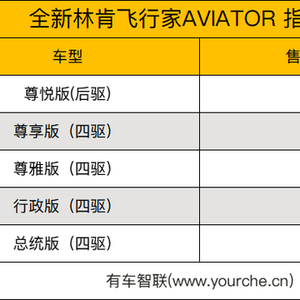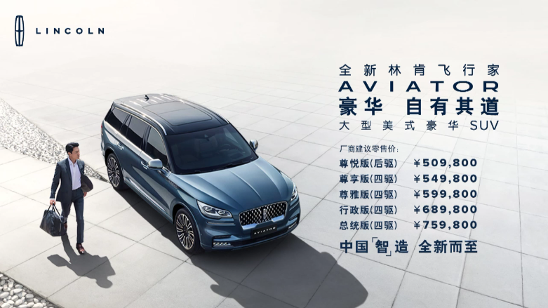 7月8日晚20:00,全新林肯飞行家Aviator正式上市,本次共推出5款配置车型,官方指导售价区间为50.98万-75.98万元。新车定位于一款中大型豪华SUV,同时提供2+2+2的6座及2+3+2的7座两种座椅布局供消费者选择。值得一提的是,新车是目前市面上同级中唯一标配3.0T V6发动机的车型。