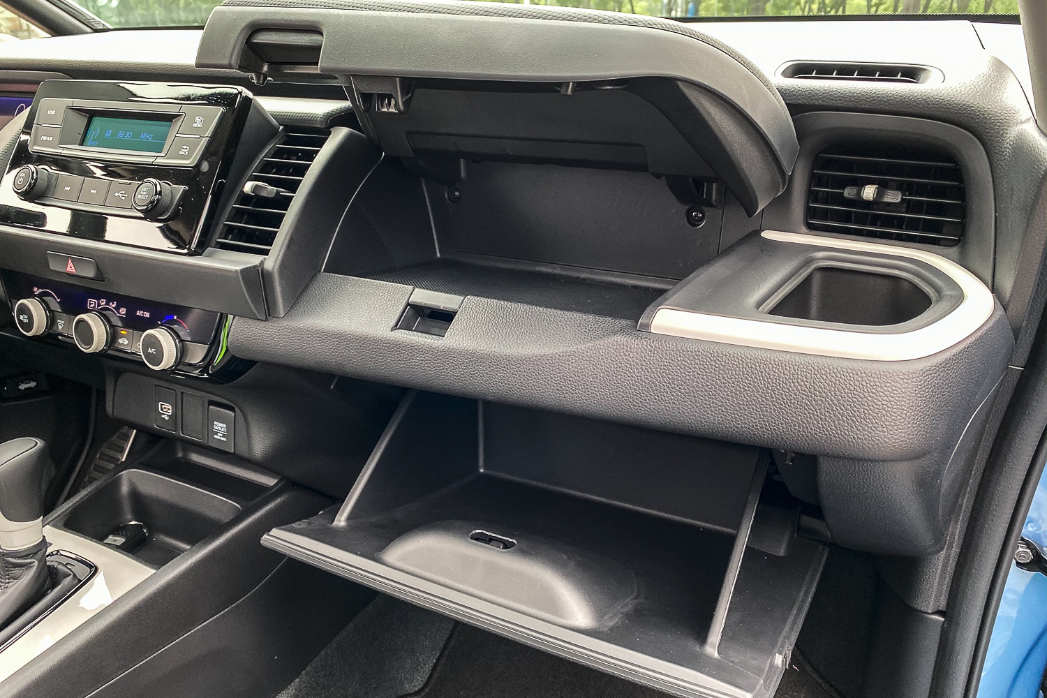 在储物空间上,空间魔术师怎么会让你失望呢?前排空调出风口处的杯架,炎炎夏日自带“冰箱”,副驾驶位的双层手套箱,上下都能装,以及后排座椅下方的掏空,后排乘客腿部空间更大。