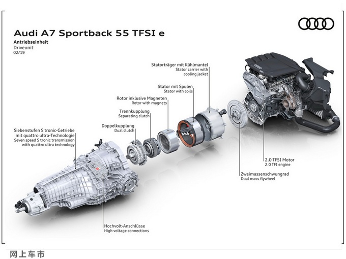 继奥迪推出了旗下Q5轻混车型以及奥迪A8 (配置|询价)插电式混合动力车型后,奥迪汽车于近日公布了A7 55TFSI E PHEV插电式混合动力车型的相关信息,新车市场起售价为74,900美元(约为53万人民币),并计划在第三季度的某月上市开售。动力方面,新车将搭载2.0T涡轮增压发动机+电动机所组成的混合动力系统,传动系统匹配7速S-Tronic双离合变速箱,并配备quattro全轮驱动系统。
