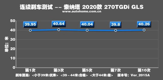 据某XX之家的刹车测试,十代索纳塔1.5T车型在100-0Km/h的刹车距离为40.04米,这个成绩放在中型车级别中也仅仅属于合格的水平。