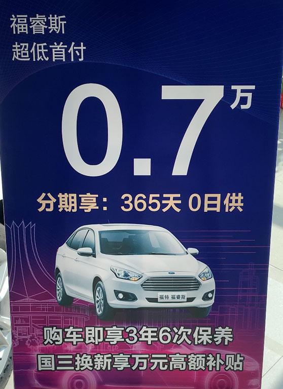 据了解,福睿斯首付最低7000元,分期享365天0日供,同时购车既享3年6次保养,国三换新享万元高额补贴。