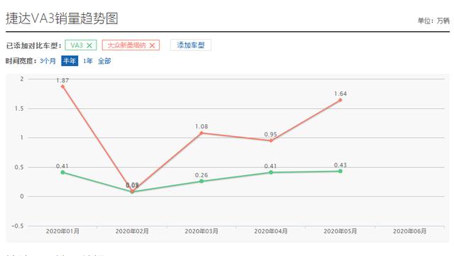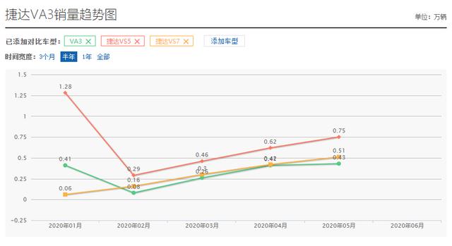 小编找遍全网也只能从2020年第一季度开始统计捷达的销量数据。首先是轿车VA3,直至今年5月份,VA3的销量也没有突破了5000台的关口。而独立成品牌后的第一款推出的车型VS5 (配置|询价)则销量不错,1月份单月共计卖出1.28万台,不过由于疫情影响所以随后的销量急转而下,虽说直至今年5月份有小幅度回升,但幅度不大。而家族中紧凑型SUV车型VS7 (配置|询价)的销量也是仅在5月份突破了5000台的订单。作为大众的子品牌,捷达的表现总体看起来可以说是平平淡淡。