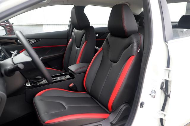 整体内饰使用了黑色为辅,红色点缀的皮质座椅,在质感上的营造还是不错的。