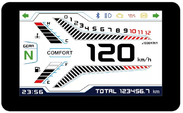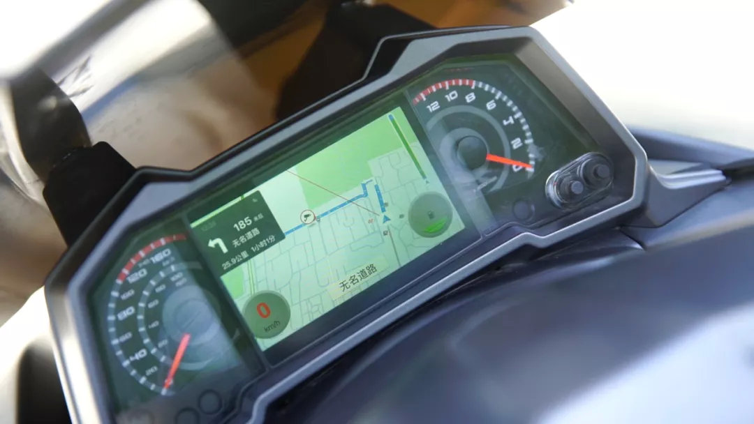 在车身其他配置上也较为用心,前单盘配西互对向四活塞辐射卡钳,后单盘配单向双活塞的配置有着很好的制动表现。ABS的介入也很及时,让骑士可以更有信心的制动。在智联版车型上,还有仪表投屏功能,通过手机APP能直观的在大屏幕上清晰的查看导航地图。