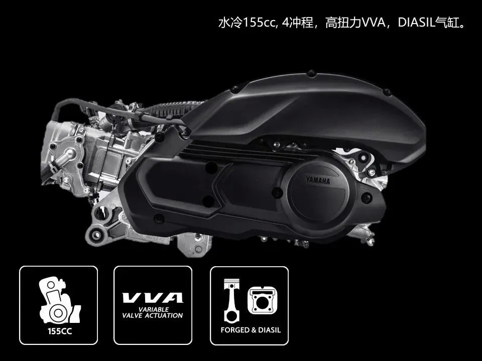 正式进入国内的NMAX155,在外形上继承了MAX家族犀利动感的基因。内在也融合了雅马哈的众多科技,搭载的单缸155cc发动机,采用了雅马哈新一代的蓝核技术,在减少摩擦系数的同时提升了燃烧效率,不仅让动力更强,而且燃油经济性也更好。值得一提的是NMAX155还采用了可变气门技术(VVA),两组进气凸轮,一组用于中低转速,另一组用于高转速,进而优化全转速范围的动力输出。