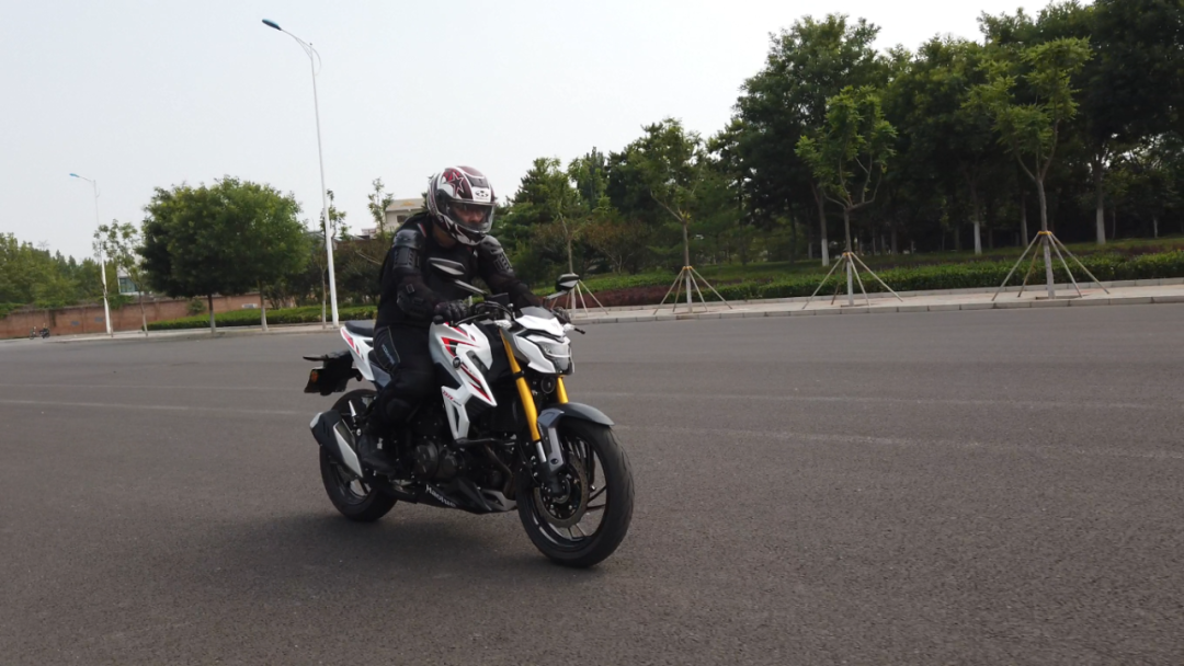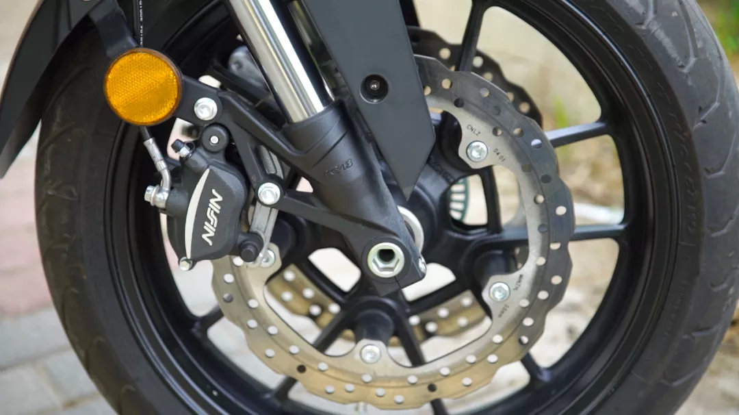 制动方面采用前298mm双盘配日清单向双活塞卡钳,后240mm单盘配日清单活塞卡钳。整体制动感受很线性,制动力足以应对它的车重以及471cc的动力。配备的博世ABS发挥出色,让骑士在制动时信心十足。