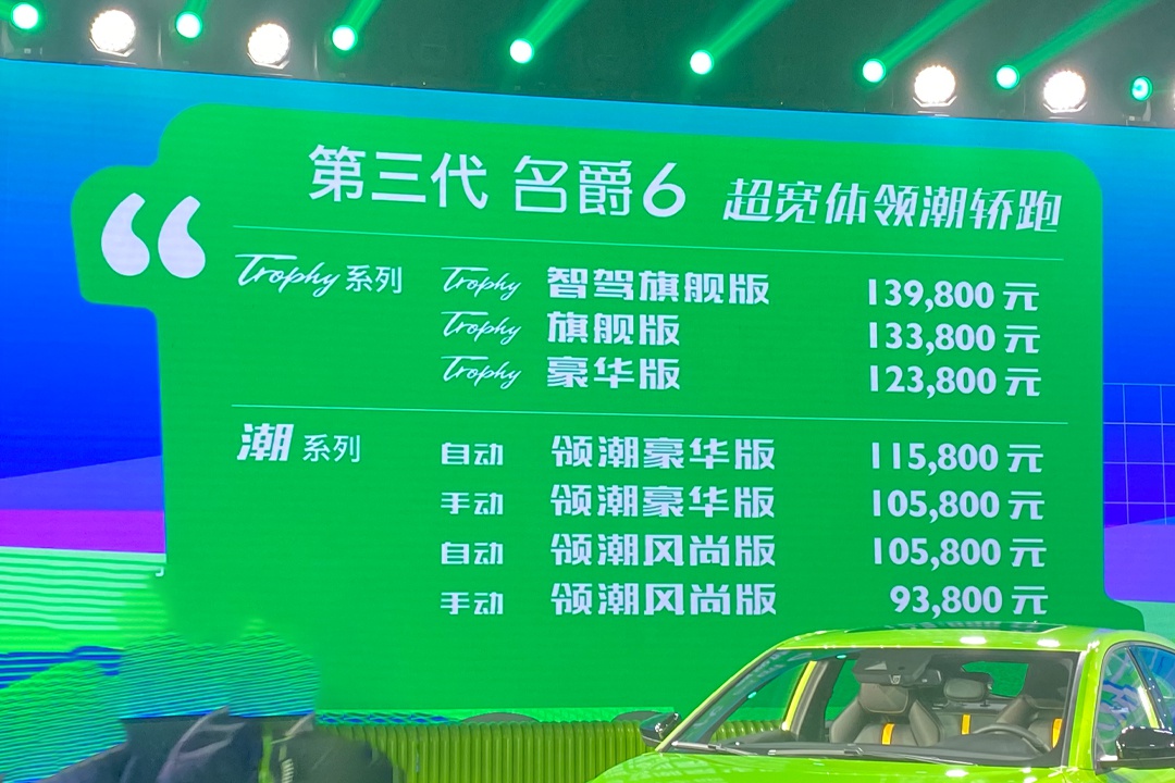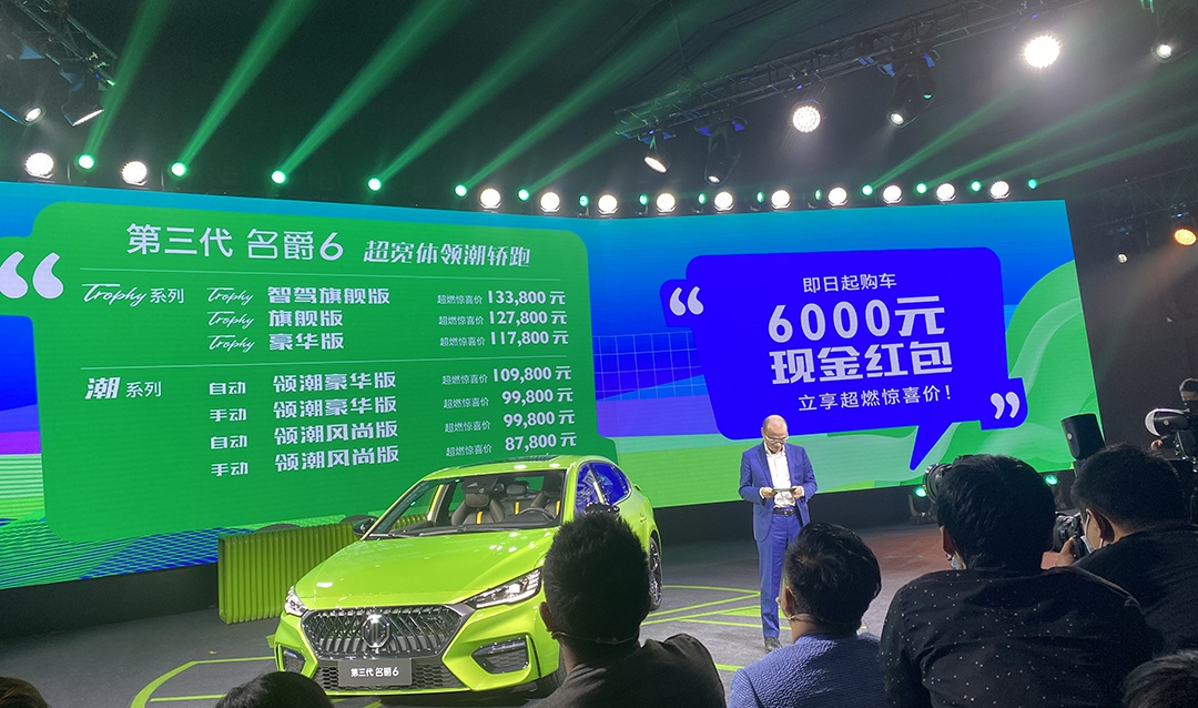 7月10日晚,第三代名爵6 (配置|询价)正式上市,新车推出“潮”和“Trophy”两大系列共计7款车型,指导售价为9.38万-13.98万元。与此同时,即日起购买第三代名爵6,还可享6000元的现金优惠,新车官方指导价直降6000元,惊喜价为8.78万-13.38万元。