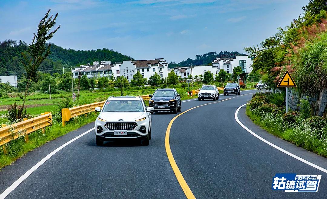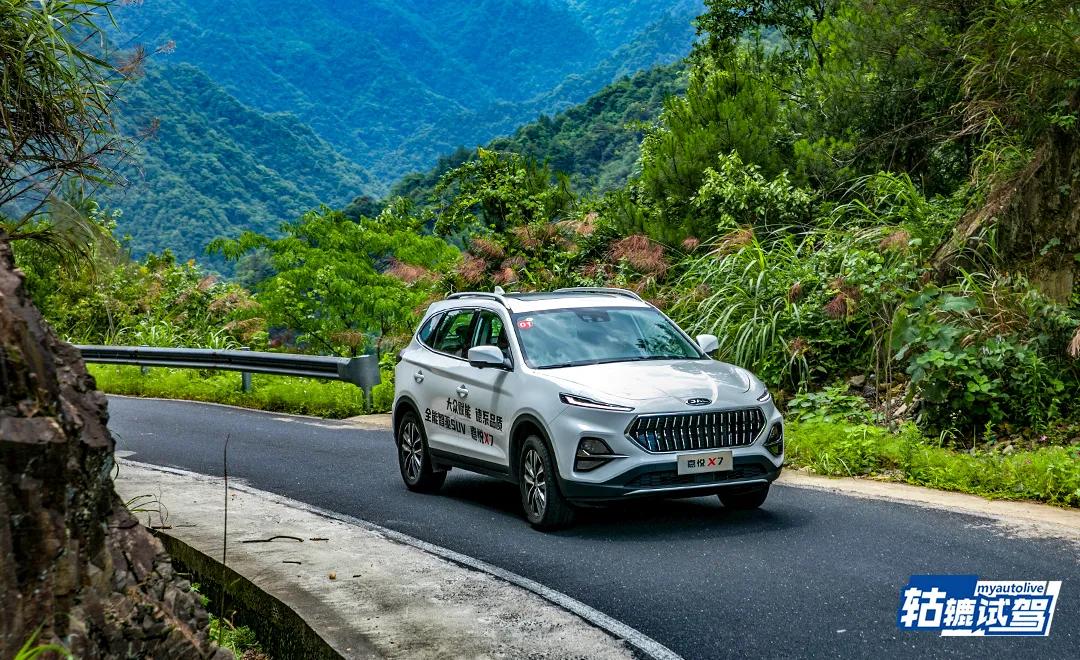 而在过弯的时候,考验的是车辆的侧倾抑制能力以及转向的灵敏度,作为驾驶者来说,开嘉悦X7是比较爽的,转向精准,整台车对你方向盘的指向有迅速的响应配合,并且方向盘助力有轻、中、重三档可调,可以根据自己的驾驶习惯去选择,侧倾的控制整体也不错。在跑山路的时候,也经过了不少颠簸的路面,由于悬架调校比较硬,有较明显的颠簸感。