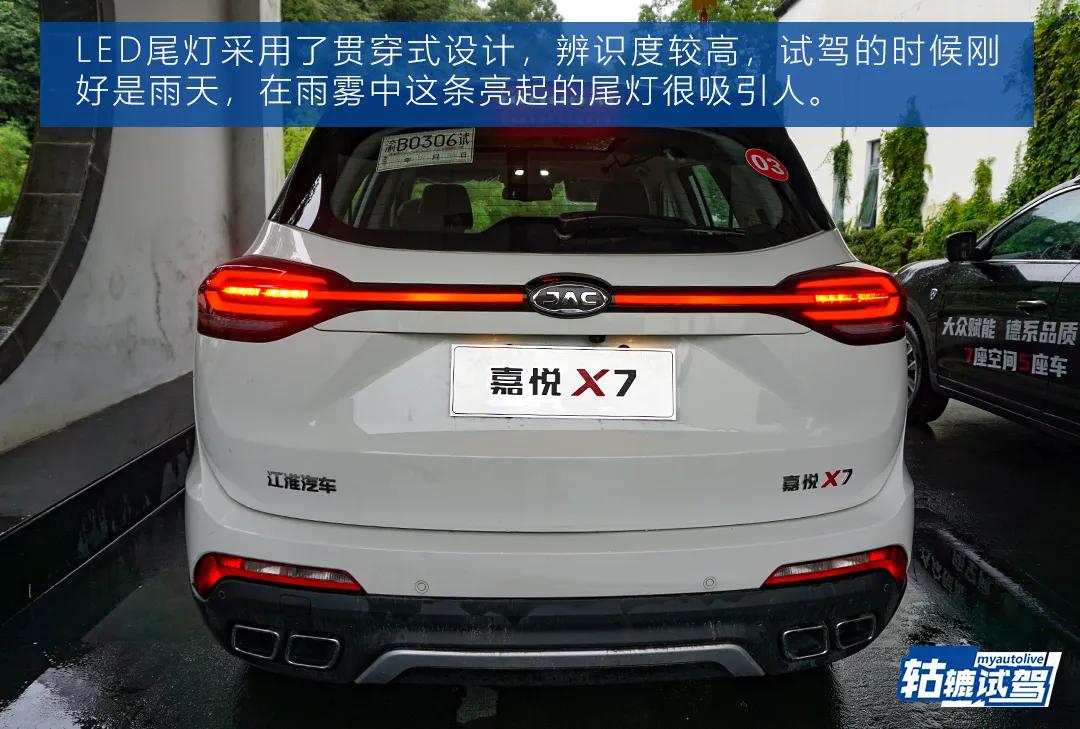 我们说的德系品质,除了制造工艺出色之外,更多的是在底盘操控方面,德系车的驾驶质感、操控感有其明显特征。嘉悦X7的底盘系统是前麦弗逊独立悬架、后多连杆独立悬架组合,在该级别中很常见,但由于是经过江淮大众专家以及麦格纳专家调校的,所以轱辘哥对其实际表现还是颇有兴趣。