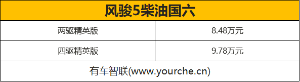 7月12日,长城旗下新款风骏5柴油国六版正式上市,共推出2款车型,其售价为8.48万-9.78万元。外观延续家族化设计,但在细节方面有所优化。动力方面,搭载最大功率为100千瓦的GW4D20M柴油发动机且满足国六排放标准。
