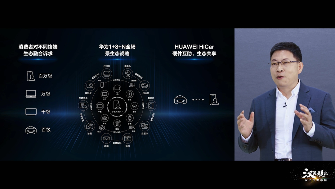 华为常务董事、消费者业务CEO余承东表示,比亚迪汉将搭载华为生态系统,通过HUAWEI HiCar、5G芯片,搭配“鸿蒙”系统,实现“1+8+N”的全场景生态系统。
