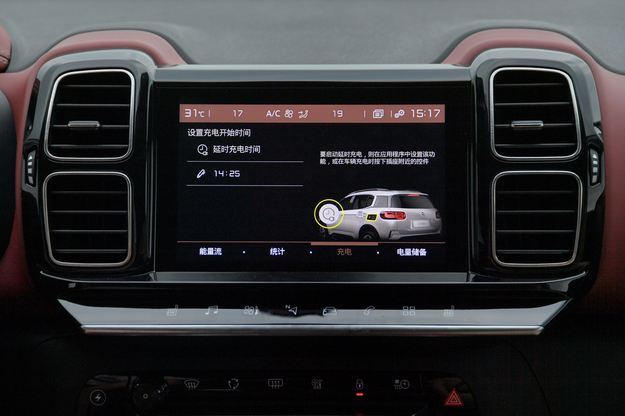 多媒体的尺寸没变,依旧是8英寸,但多媒体系统中增加了用来显示车辆混动状态的能量图、预约充电时间控制等新能源车型专属的控制界面。