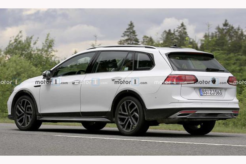 车身侧面,前后轮眉上黑色的装饰条格外清晰,大尺寸轮圈让新车看上去气势十足。同时,加高的车身底盘与银色的车顶行李架都在表明这不是一辆普通的高尔夫旅行版。车尾部分,新车尾灯依旧有伪装,排气方面依旧采用双边共两出的造型。