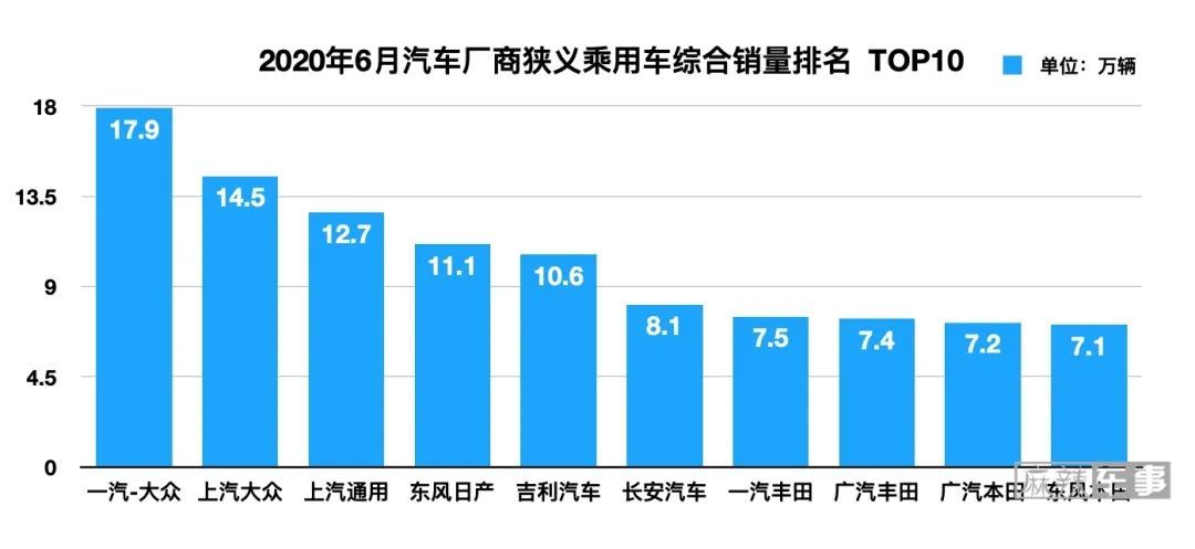 (注:数据来源乘联会6月狭义乘用车综合销量,与传统官方数据统计方式有差异,仅供参考。)