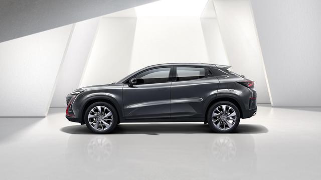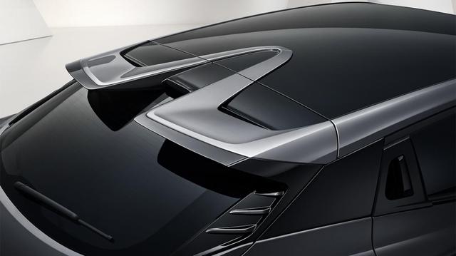 车身侧面,悬浮式车顶、隐藏式门把手,搭配内凹式轮拱造型和较复杂的车身线条,在视觉上也是十分出彩。多辐式哑光灰色轮圈的加入,尽显运动风格。