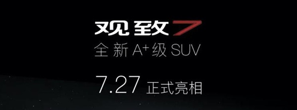 近日,我们从观致汽车官方处获悉,观致旗下全新A+级SUV车型观致7即将于7月27日正式亮相。从观致汽车的命名习惯来看,观致7在定位上会略高于观致5 SUV一些,将成为未来观致汽车的旗舰车型。