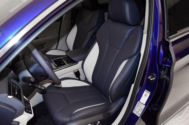 车内座椅表面为仿皮材质包裹,两款高配车型为真皮材质,座椅造型宽大,内部填充较为饱满厚实,两侧凸起的护翼也能够给身体提供了不错的侧向承托,并具备主/副座椅电动调节功能。