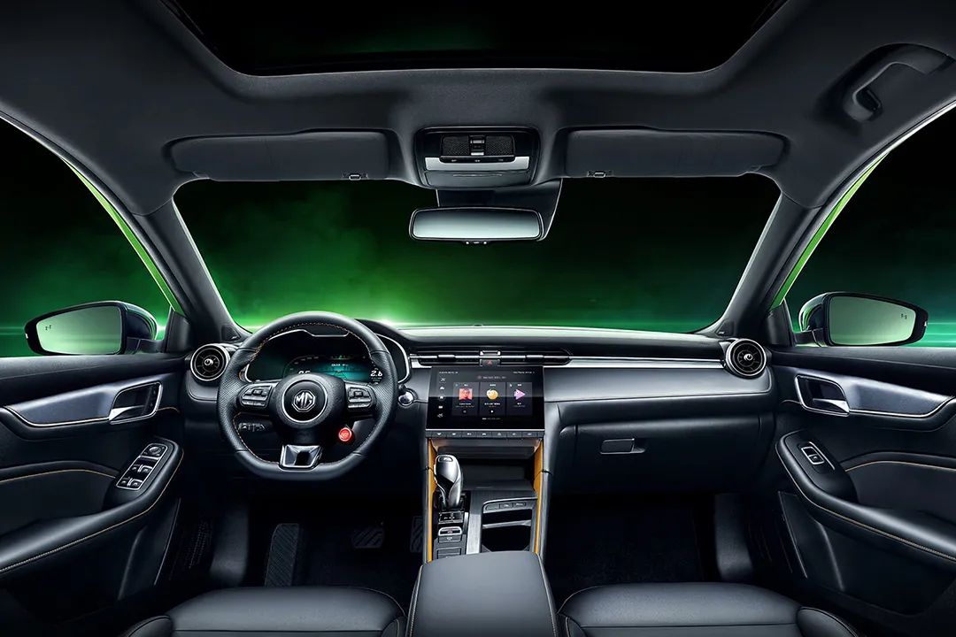 内饰部分,全新名爵6的整体造型延续了名爵家族式设计,风格十分简洁,细节处有一定的运动感和科技感,并保持一定的精致程度。其中,12.3英寸的全液晶仪表还配有AR实景功能,再搭配上采用10.1英寸IPS硬屏的中控屏,使名爵6的车内有着不错的科技感。此外,带真皮打孔的平底方向盘和包裹性较好的前排座椅,使名爵6的车内运动感十足。
