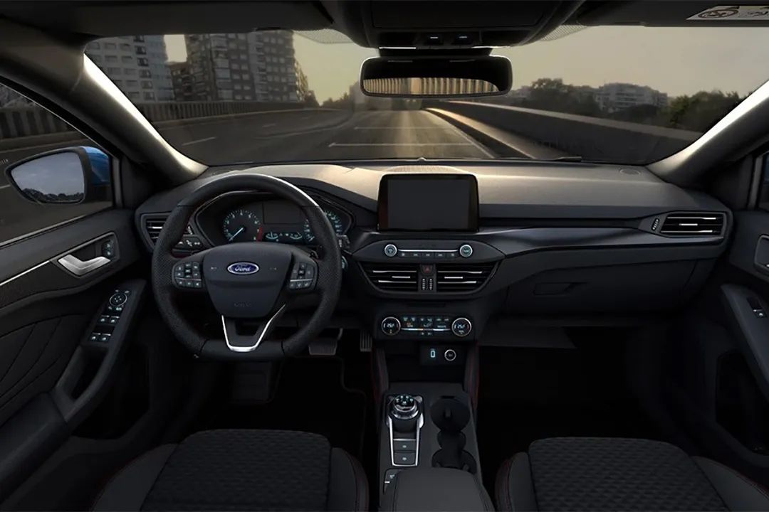 内饰部分,与外观相同福克斯依然具有十足的运动感,整体采用黑色配色,并在细节部分采用皮质和软质材料包覆,并以红色缝线加以点缀,再加上带打孔真皮和红色缝线的三幅式运动风格方向盘,使车内的运动氛围进一步突出。此外,福克斯还配备了全液晶仪表盘和8英寸悬浮式中控屏以及电子换挡旋钮,加上福特家族式的浅蓝色背光,更加突出了整车的科技感。