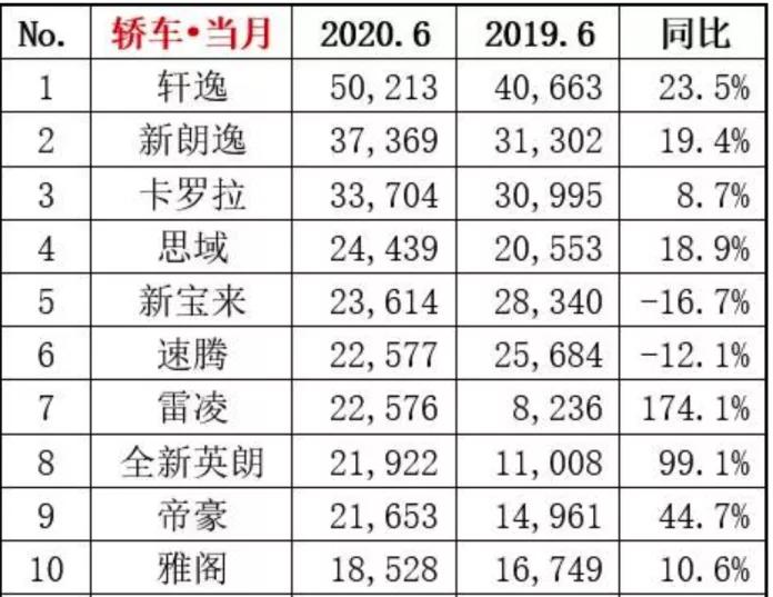 新一代轩逸 (配置|询价)外观更加运动、年轻,内饰也变得更具科技感和豪华感,凭借其出色的舒适性以及燃油经济性,以“小天籁 (配置|询价)”的姿态出现在消费者面前,受到许多消费者的青睐,轩逸车系2020年6月单月销量50213台,同比劲增23.5%,4-6月连续三月获得月度全国乘用车销量冠军。同时,轩逸车系1-6月累计销量205967台,成为今年上半年唯一一款累计销量超20万台的车型,并荣获今年上半年全国乘用车累计销量冠军。