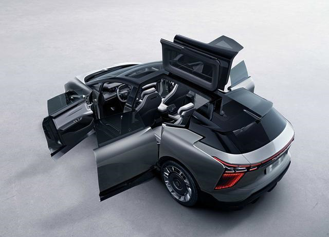 外观方面,新车外观造型十分前卫,采用了轿车与MPV车型结合的跨界风格。拥有类似于轿跑车型的车身姿态,视觉重心很低。前脸为全封闭式格栅,同时,新车将使用了大量LED灯带营造科技感。新车流畅的车身线条更符合空气动力学原理,对于一款电动车型来说,更低的风阻系数将有助于续航能力的提升。值得一提的是,新车取消了流媒体外后视镜,改成了传统的后视镜。
