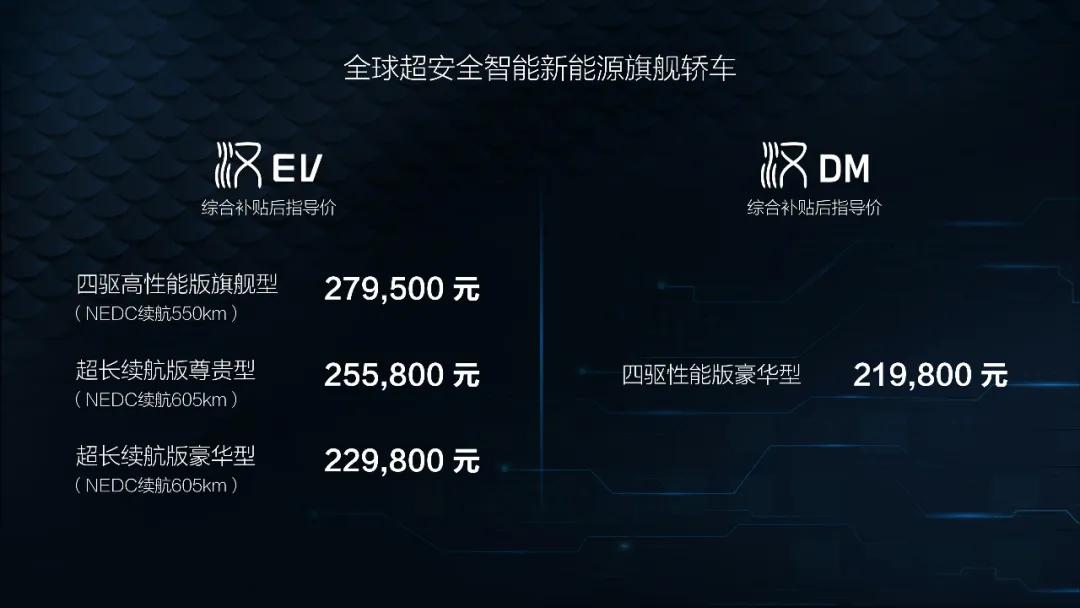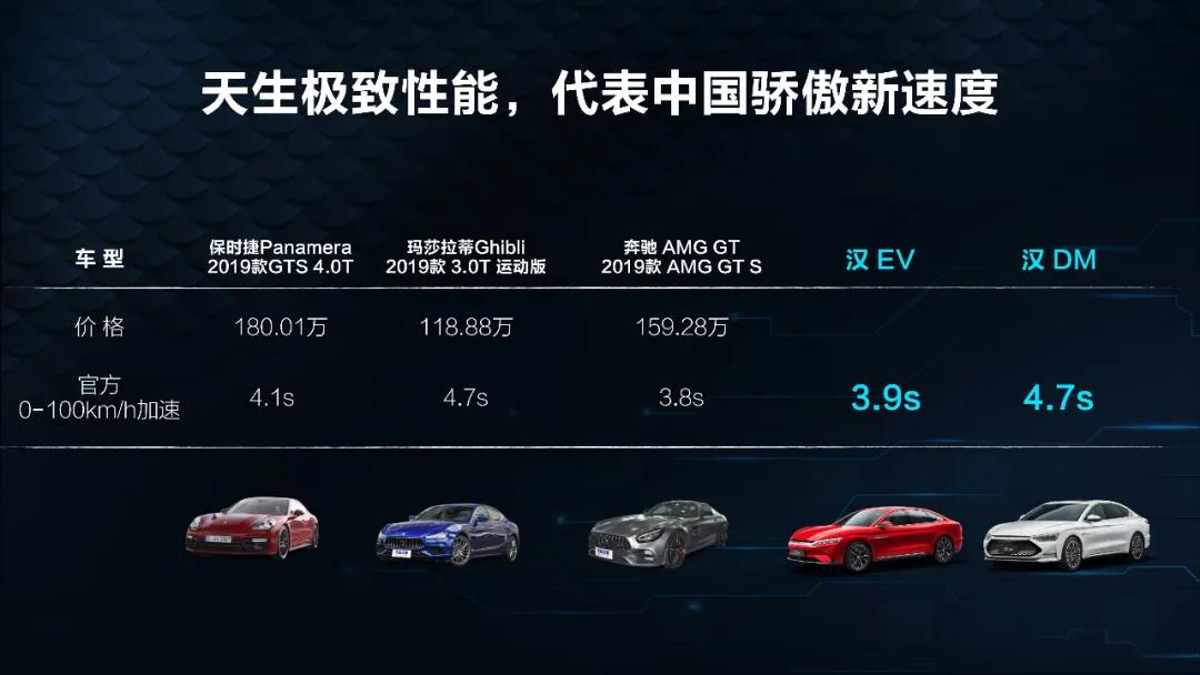 汉EV四驱高性能版旗舰型百公里加速仅需3.9秒,是中国加速最快的量产新能源轿车;汉DM四驱性能版豪华型百公里加速4.7秒,是中国加速最快的插电混动轿车。就连“平平无奇”的汉EV超长续航版豪华型和汉EV超长续航版尊贵型,NEDC综合工况纯电续驶里程也达到了605公里,位居纯电动汽车续航里程第一梯队。