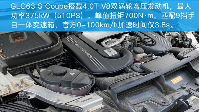 AMG GLC 63 S搭载了一台V8 4.0升双涡轮增压发动机,最大马力510马力,最大扭矩700牛·米,大排量V8发动机相当有底蕴,整体加速感受十分的畅快,3.8秒的百公里加速时间足以与许多超跑相抗衡。