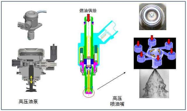 除了米勒循环,这款发动机热效率高的另一个原因是采用了350Bar中置喷油器。垂直向下的中置喷油嘴相比向气缸壁倾斜的侧置喷油嘴,喷出的燃油不易附着到气缸壁上,更容易与空气融合。同时,350Bar的喷射压力使得燃油喷射雾化效果更好,就像喷淋头,压力越大,喷射的水珠直径越小、越发散。这样一来,燃油雾珠与空气结合的更均匀更彻底,燃烧时也就更加充分。
