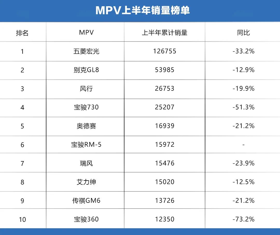 上榜的MPV车型与以往相差不大,所有车型的销量都比去年有较大程度的下跌,而宝骏RM-5上市不到一年的时间就挤进前十榜单,这样的销量表现也算得上出彩。“亘古不变”的是,五菱宏光和别克GL8依然处于榜单前两名。