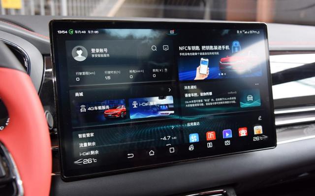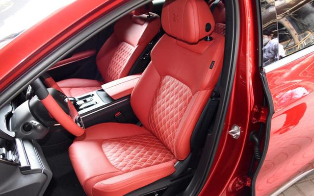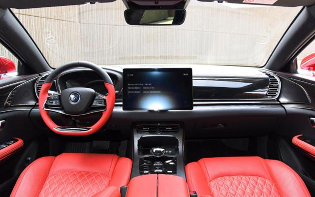 内饰上,比亚迪汉整体采用了红黑撞色的整体配色。全新设计语言官方称融入了中式美学概念,采用了对称式设计;中国红色系的座椅加上中控台、方向盘以及门板上的红色装饰,也给人带来了一定的视觉冲击感。