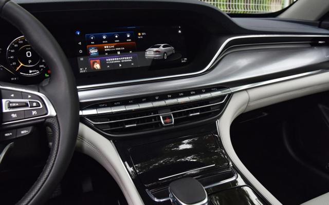 车内来看,新款GA8的设计也符合其现阶段旗舰轿车的定位,大气而富有豪华感。双12.3英寸连屏会出现在次顶配及顶配车型上,十分上档次。另外两款车型则是7英寸液晶显示屏+8英寸中控屏,科技感会稍弱一点。用料上,GA8也采用了大面积的软质材料进行包覆,除了搪塑和皮质材料之外,在门板侧面还加入了Alcantara材料。另外,新车全系标配了真皮+绒面的前排电动座椅,电子换挡杆还融入了水晶材质,看着相当有质感,小细节设计的不错。