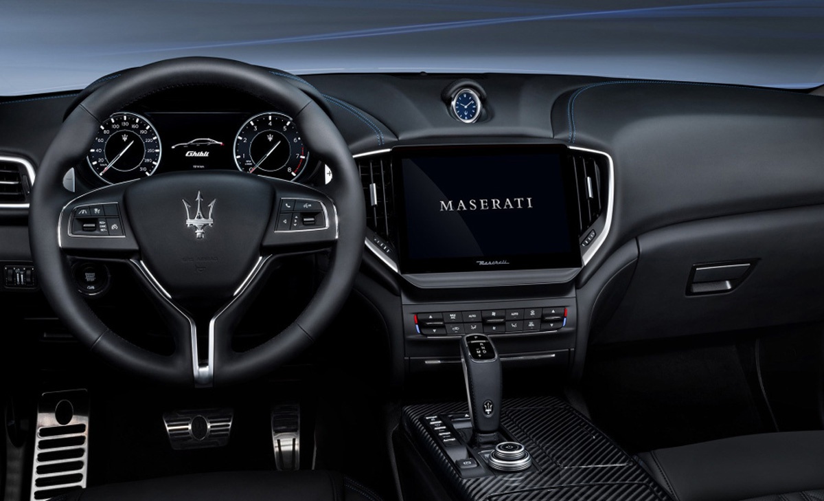 外观方面,新车采用了直瀑式进气格栅,中部装饰有镀铬饰条以及经典三叉戟品牌标识,并与两侧狭长犀利的前大灯组相连,霸气十足。车身侧面线条流畅简洁,鲨鱼腮散热口以及刹车卡钳都采用了蓝色装饰,突显其独特的身份。车尾部分,尾灯组造型独特,点亮后辨识度高。排气布局为双边共四出式,整体造型层次感分明。
