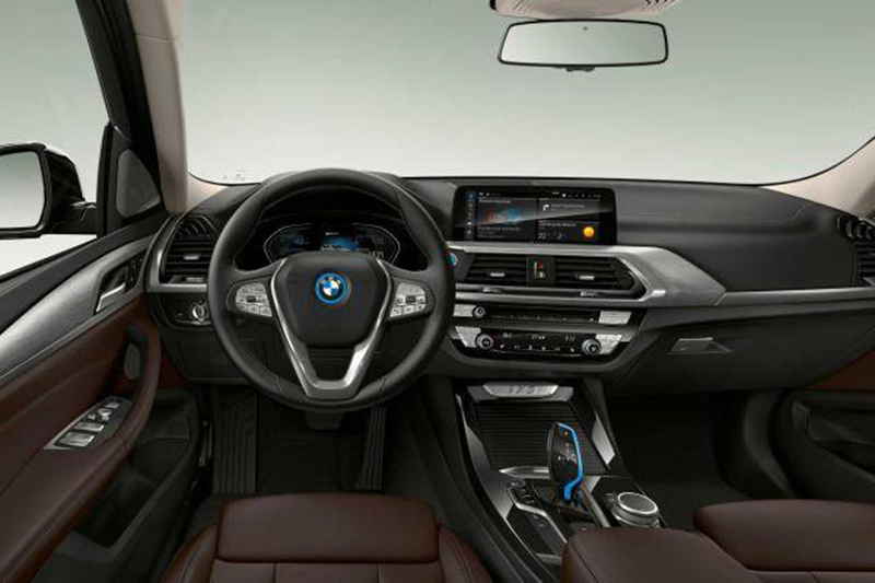 内饰方面,新车内饰延续了燃油版X3车型设计,方向盘中央车标和挡把等多处使用蓝色元素装饰,表明其新能源车的身份。悬浮式中控屏与液晶仪表盘也为车内增加了时尚感和科技感。