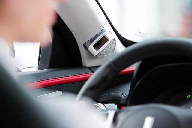 车内还具备AI智能面部识别,识别模块位于A柱内侧下方,通过实时监控识别驾驶人员面部信息,确认驾驶员的最终身份,通过面部识别检测疲劳分心状态、注意力情况和驾驶员表情,做出个性化服务及提示。