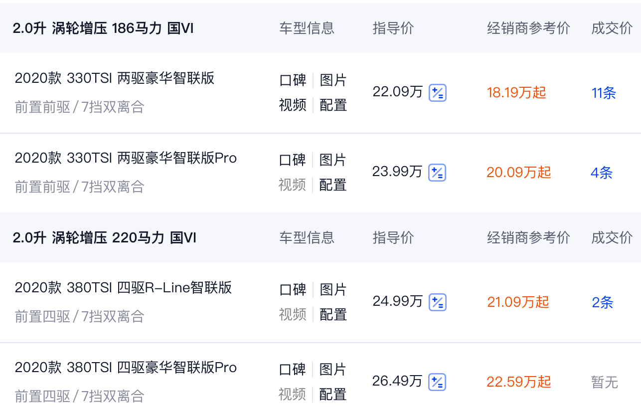 由于是2.0T起步,所以它的起售价,也瞬间来到23.58万元,相比探岳的2.0T版22.09万元的售价,高了1.49万。